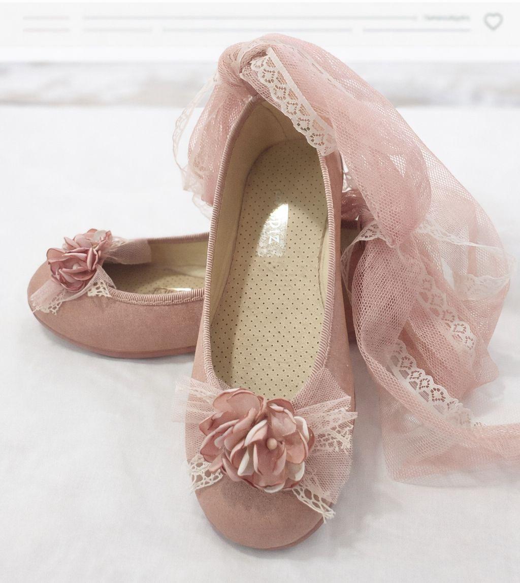 Bailarinas rosa empolvado o maquillaje. Llevan flor y cintas de tul con puntilla. Leer la descripción del producto.