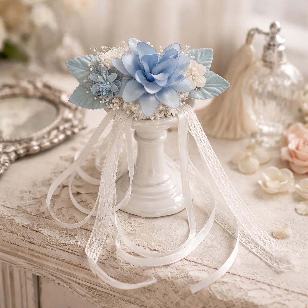 Tocado celeste. Pida foto por wasap si desea ver mejor detalle.