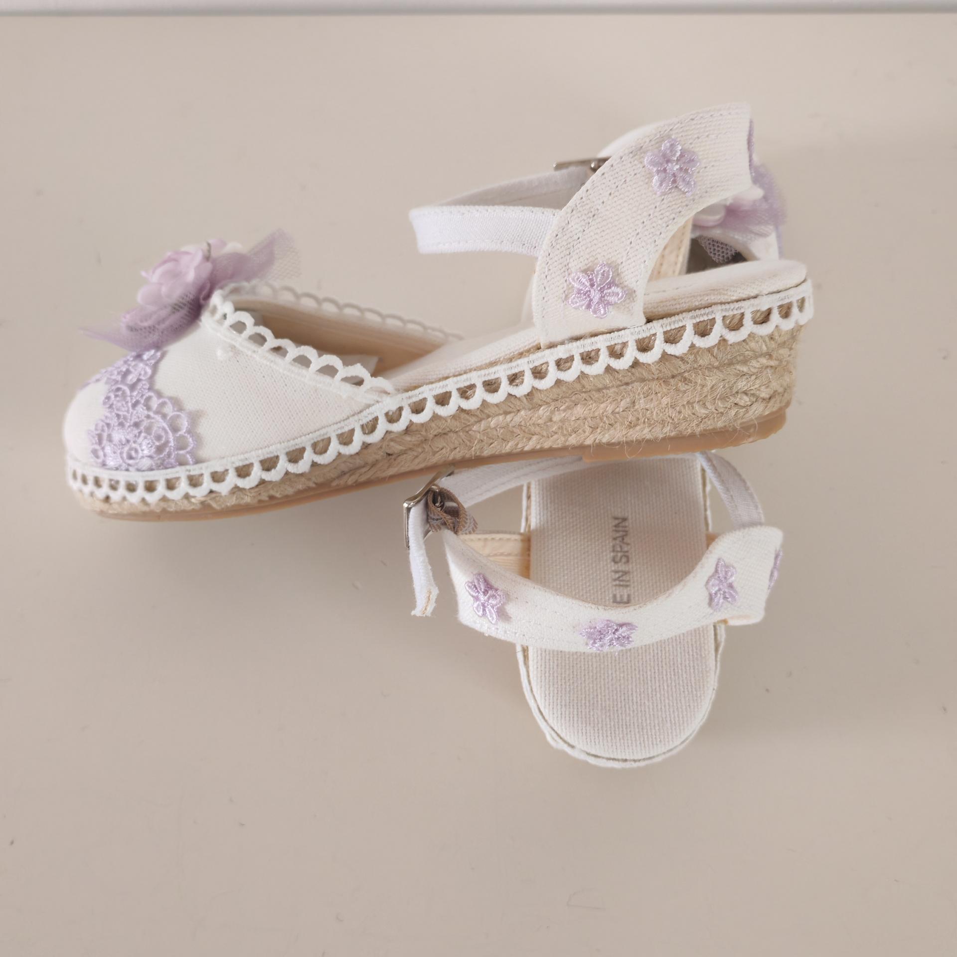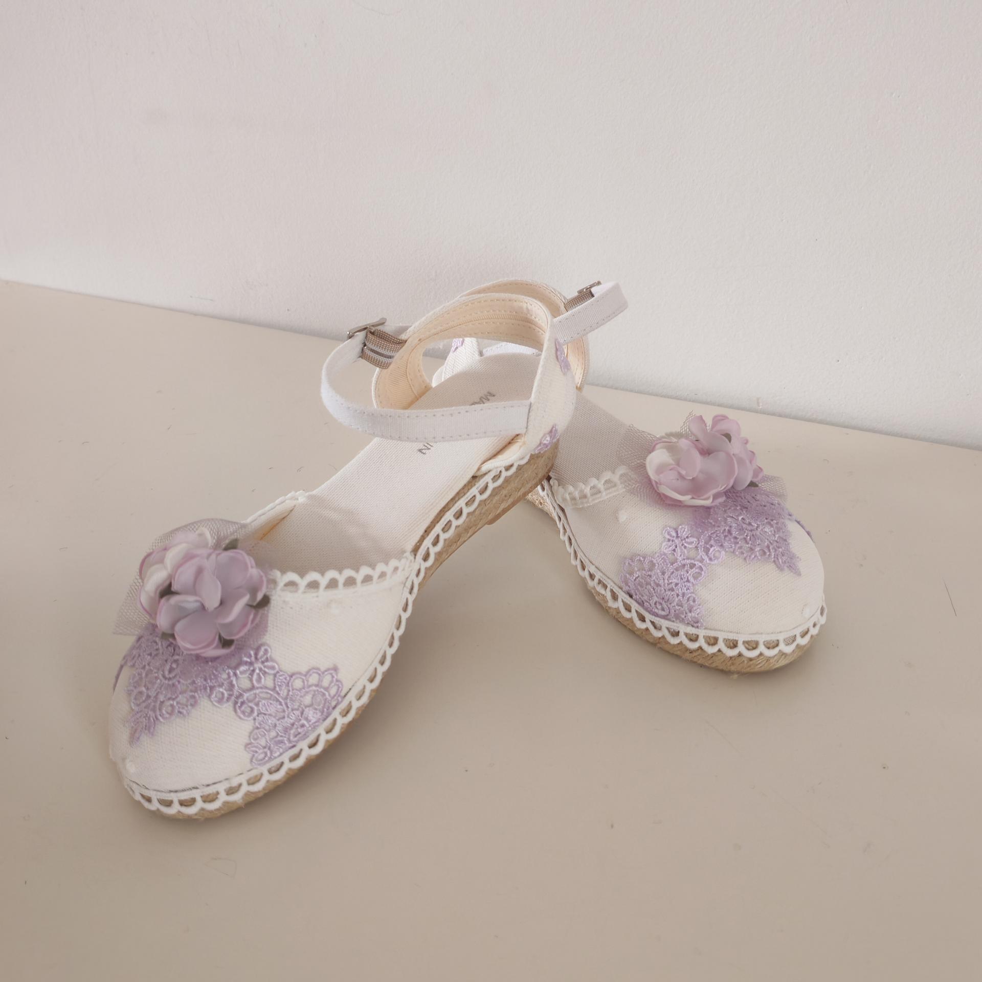 Zapatilla de comunión decorada color malva. Bajo pedido. Entrega entre 5 y 10 días laborables
