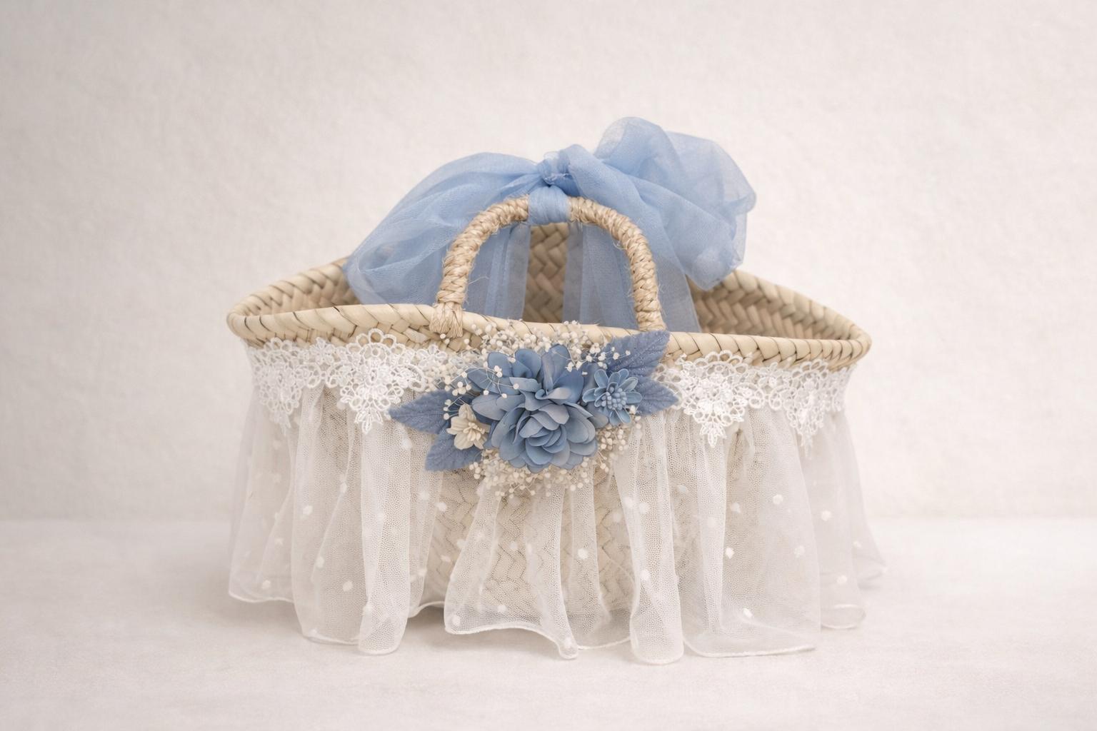Capazo decorado azul celeste.