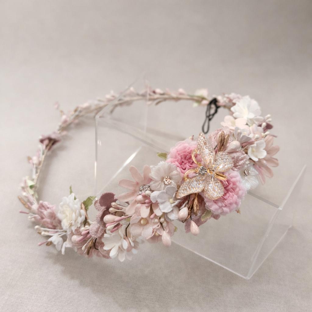 Corona comunión rosa perlado