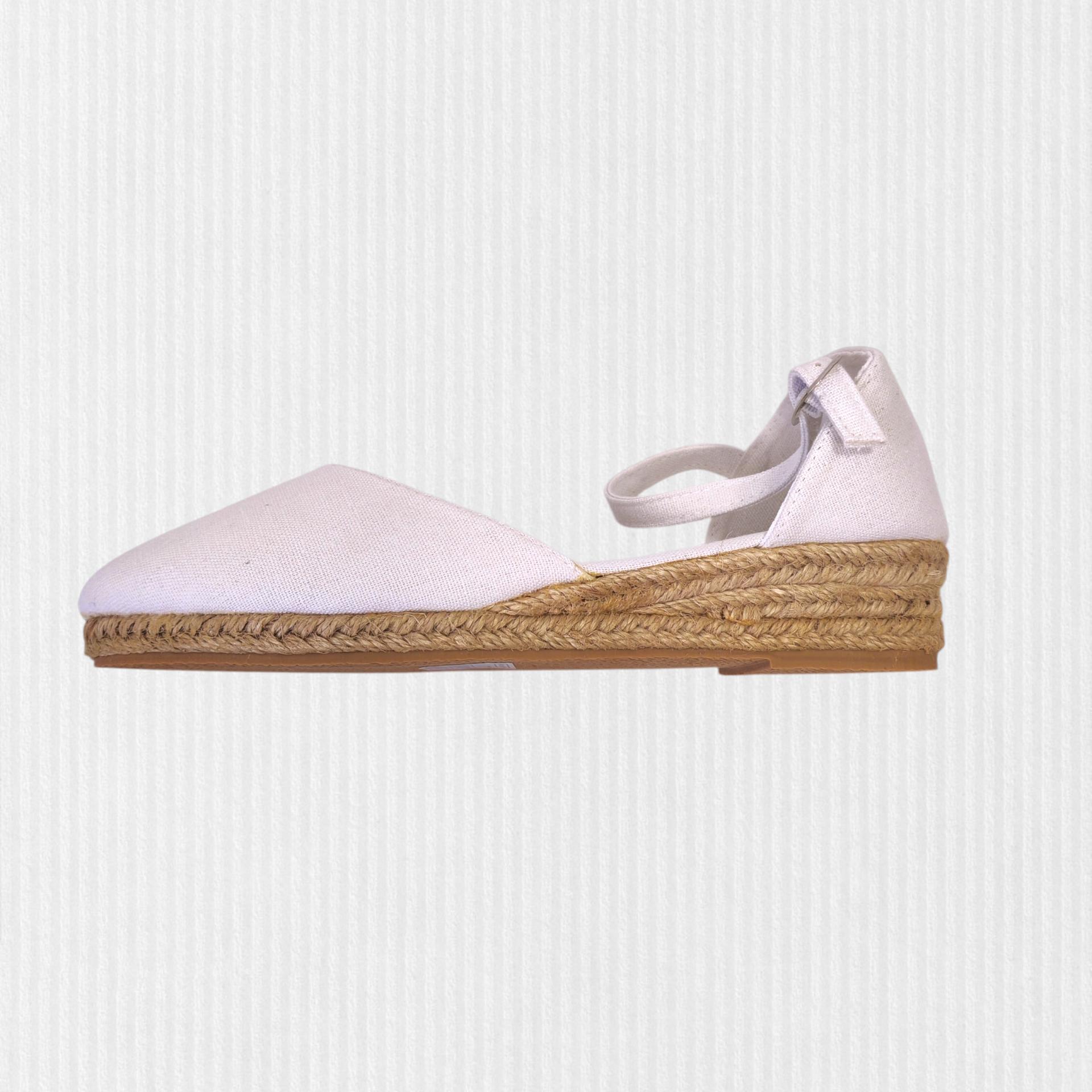 Zapatillas de esparto blancas. Cuña en tacón de 3 cm.