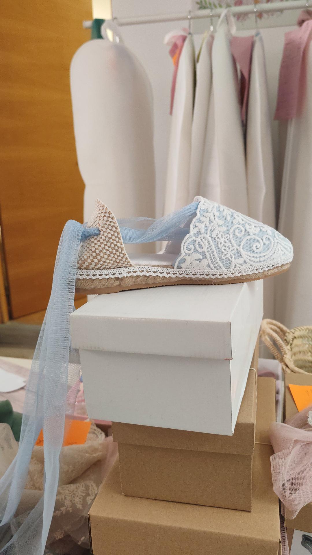 Esparteña de comunión verde menta con beis. Personalice el color por wasap
