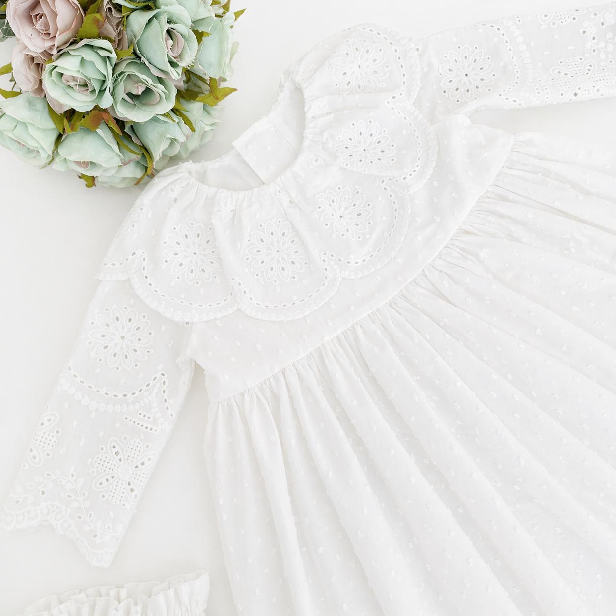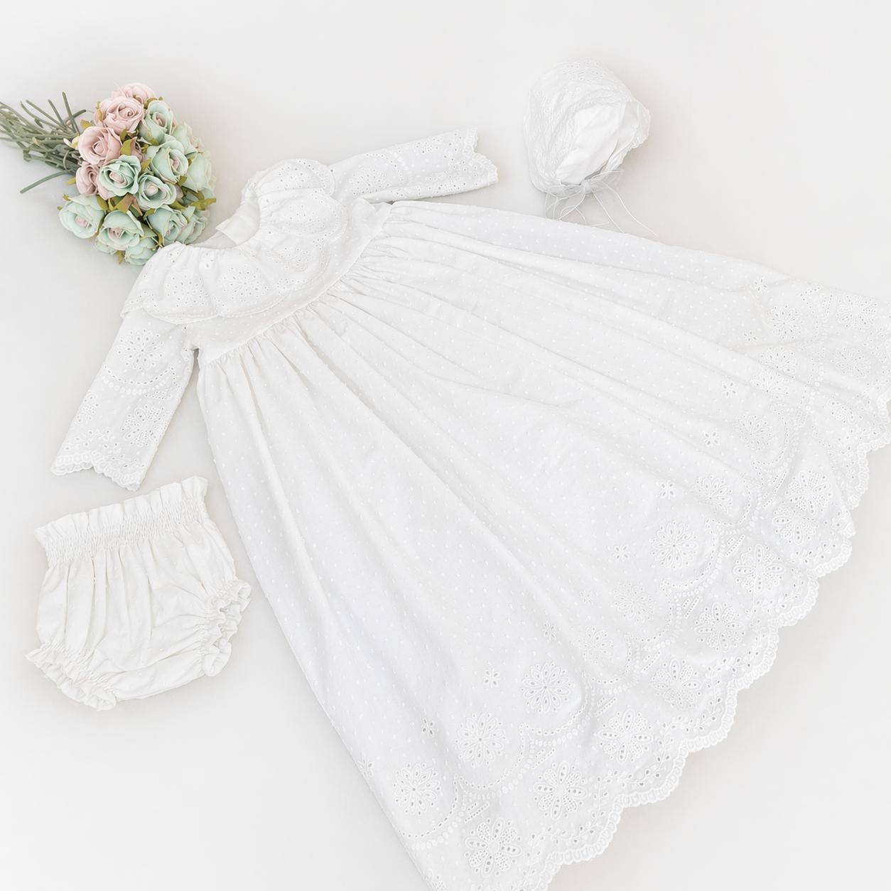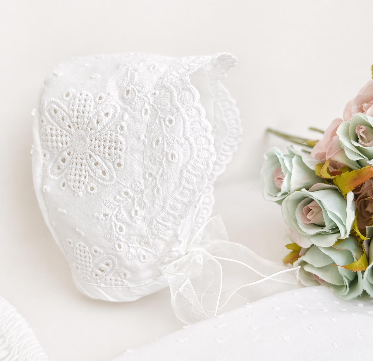 Traje de cristianar unisex con capota y braguita. Algodón bordado blanco. Talla amplio.