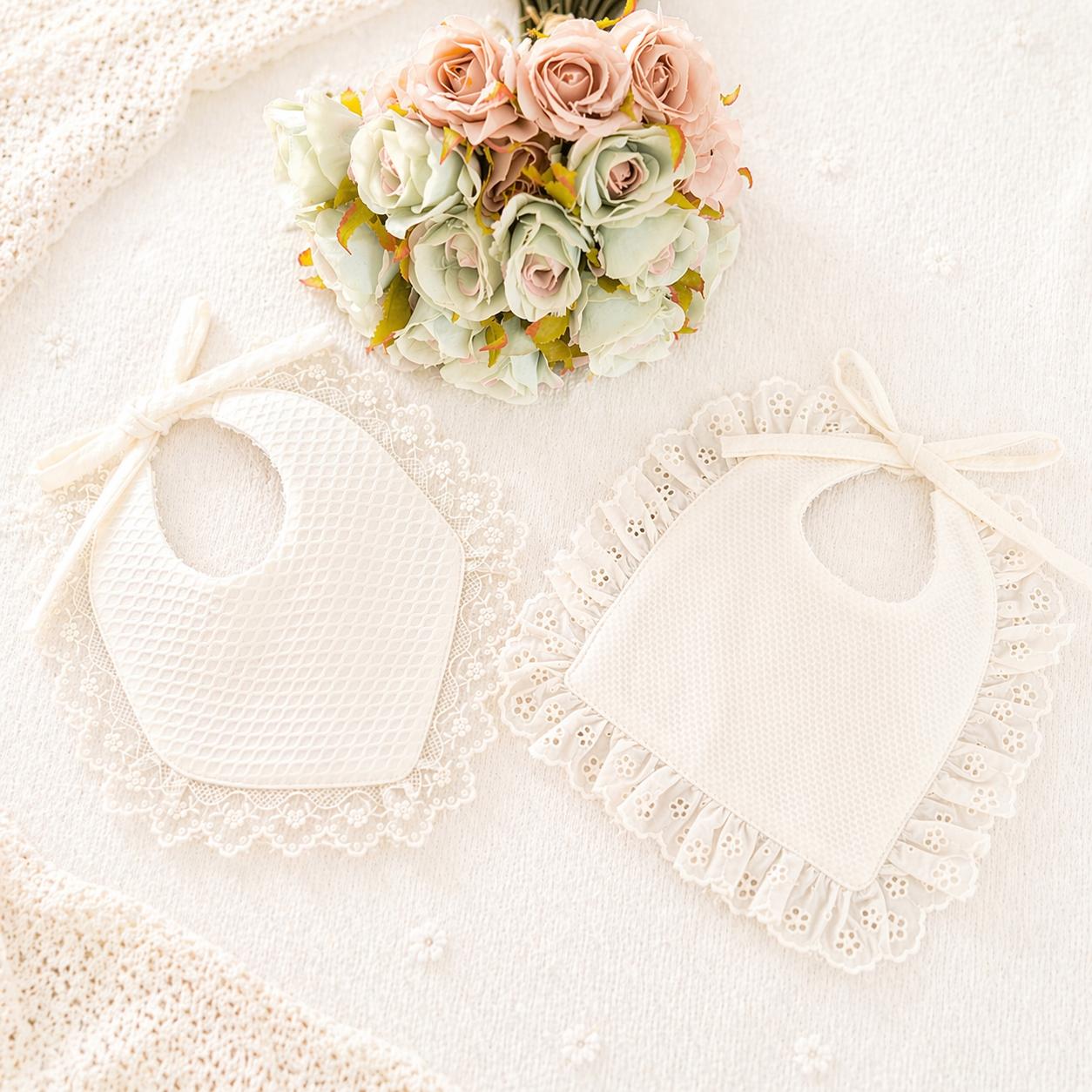 Babero con encaje. Pique beis. Dos modelos a elegir.